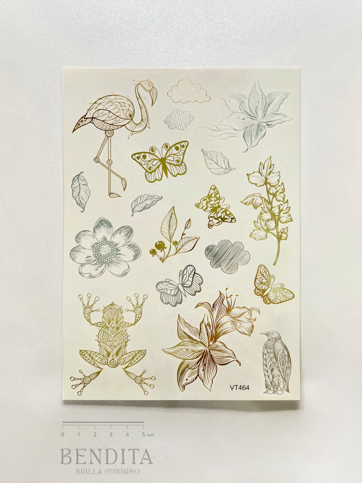 Bendice tu piel con nuestros tatuajes temporales metalizados en tonos dorados y...