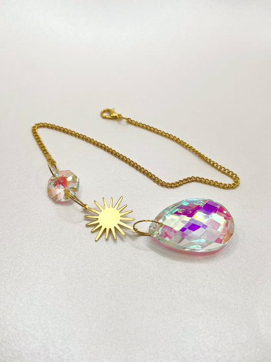Nuestros atrapasoles de cristal, hechos a mano, están diseñados para iluminar cualquier espacio con elegancia y encanto. La alta calidad del cristal refleja la luz de manera deslumbrante, creando destellos mágicos que llenan tu hogar de calidez.