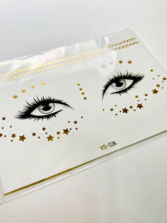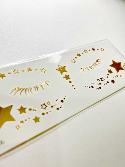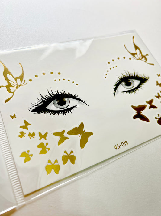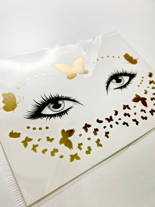 Mariposas, Estrellas y Corazones dorados para el rostro