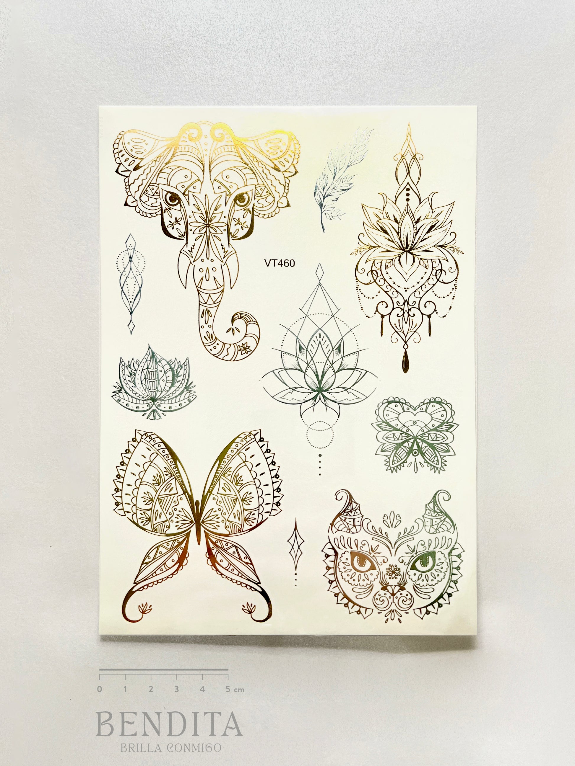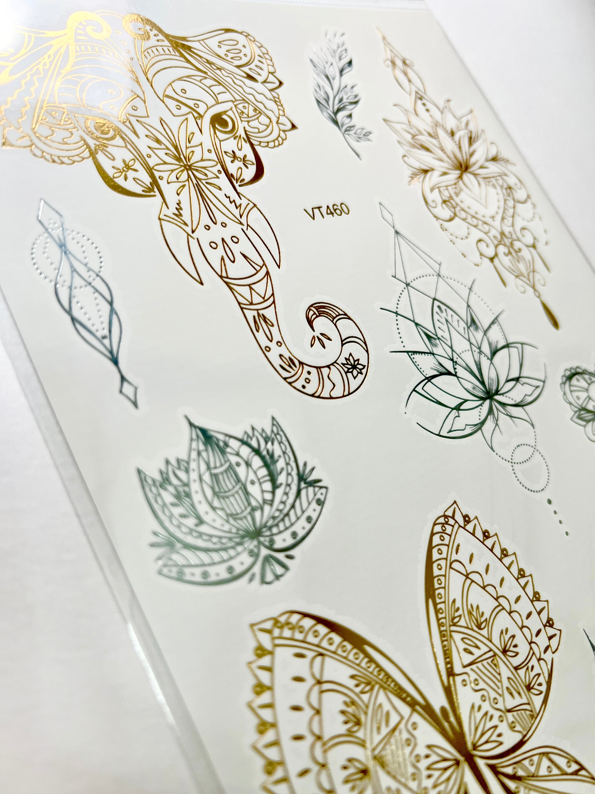 - Calidad Premium: Tatuajes de alta calidad con un brillo metálico duradero en dorado y plateado. Permanecen vibrantes durante varios días sin perder detalle.