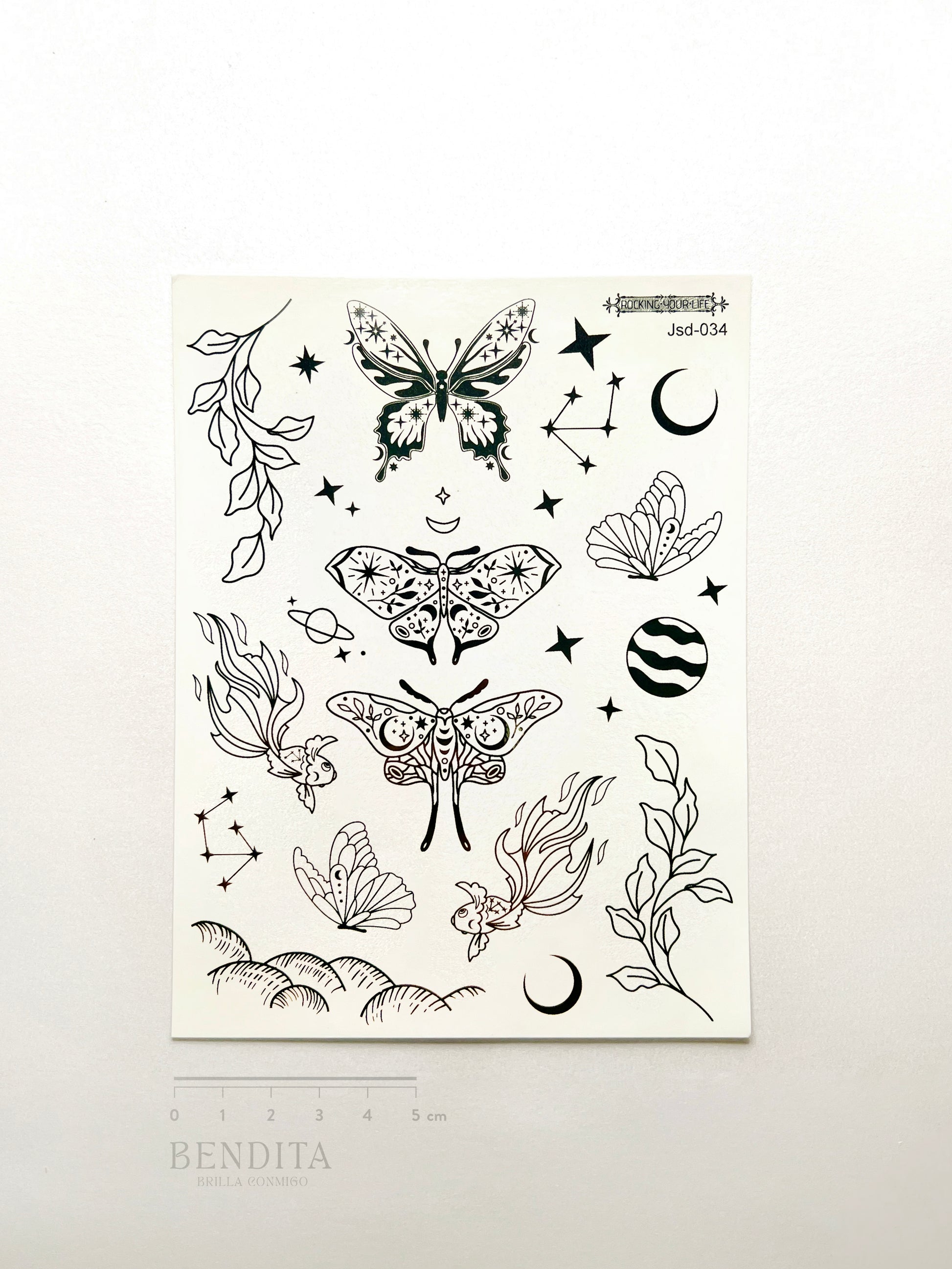 Mariposas, Planetas y Estrellas en Tinta Negra