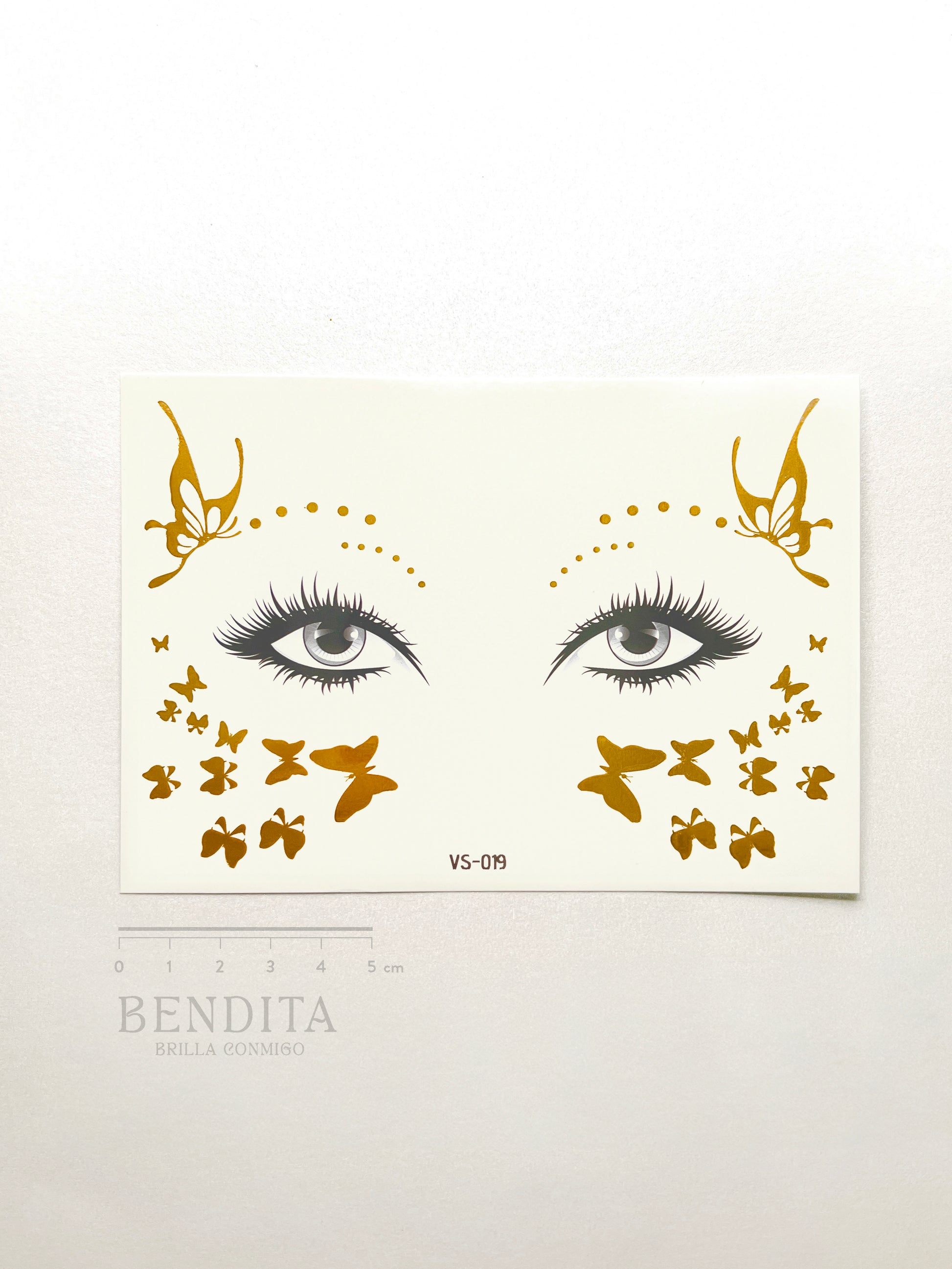 Estos tatuajes temporales metálicos en tonos dorado y plateado están diseñados para realzar tu rostro con un toque de brillo.