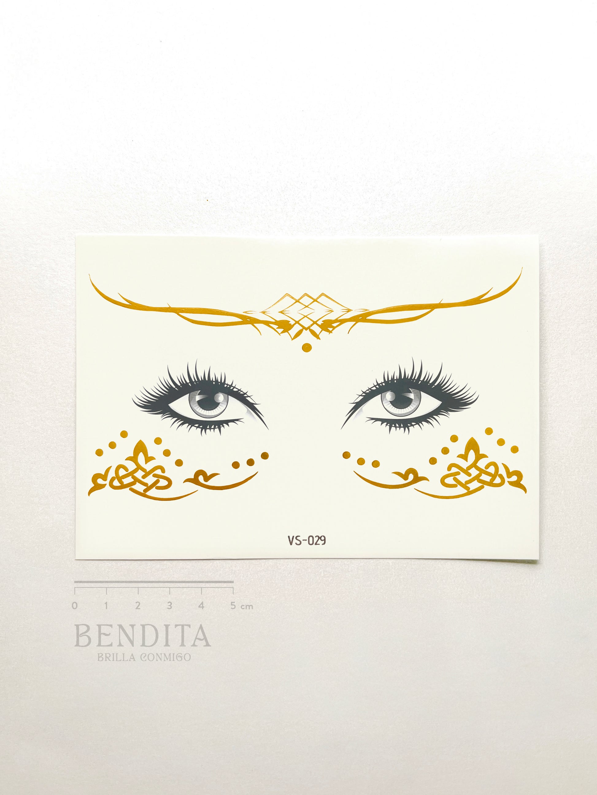 Estos tatuajes temporales metálicos en tonos dorado y plateado están diseñados para realzar tu rostro con un toque de brillo.
