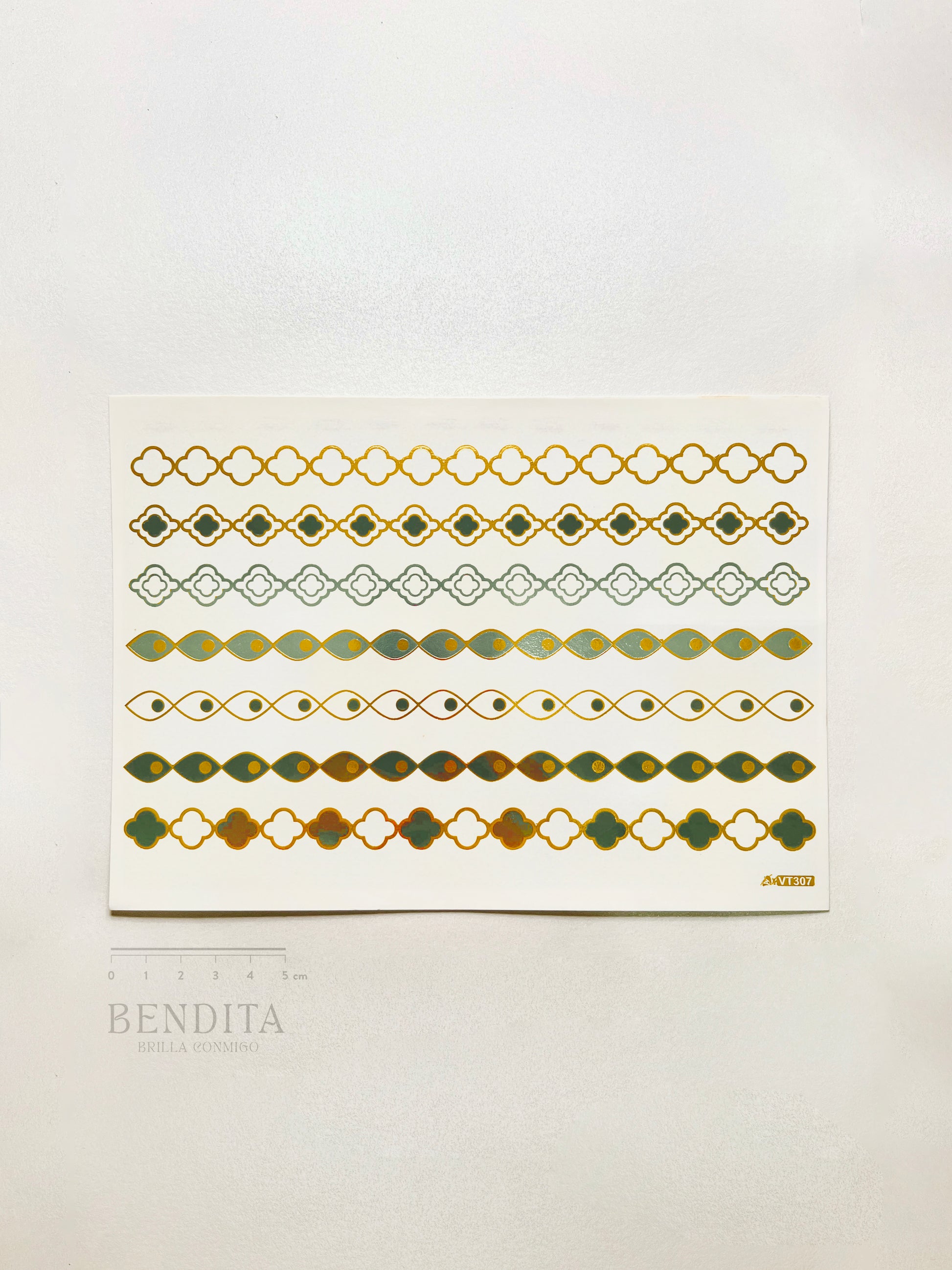 - Calidad Premium: Tatuajes de alta calidad con un brillo metálico duradero en dorado y plateado. Permanecen vibrantes durante varios días sin perder detalle.