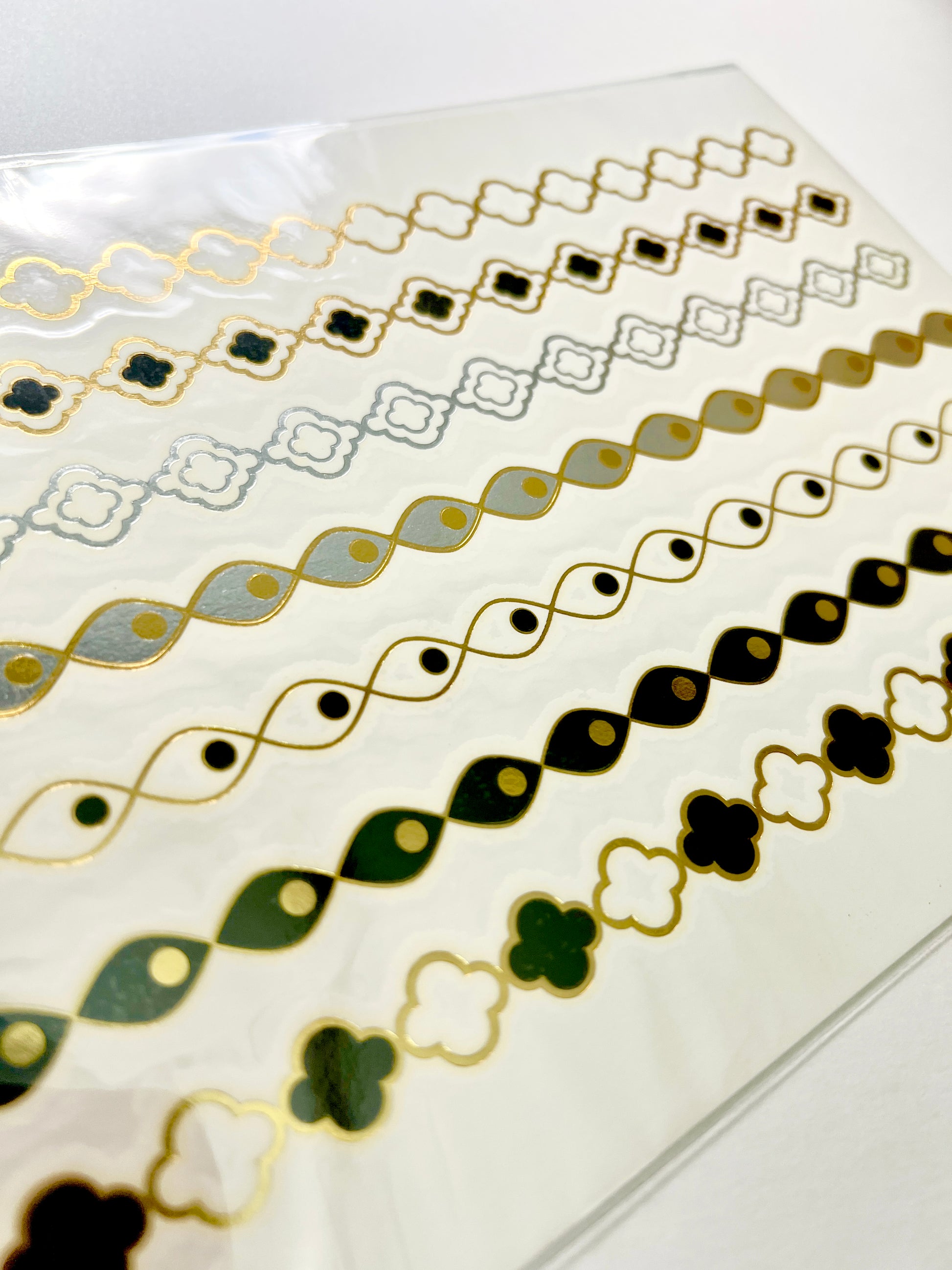 Estos tatuajes temporales metálicos en tonos dorado y plateado están diseñados para realzar tu cuerpo con un toque de brillo.