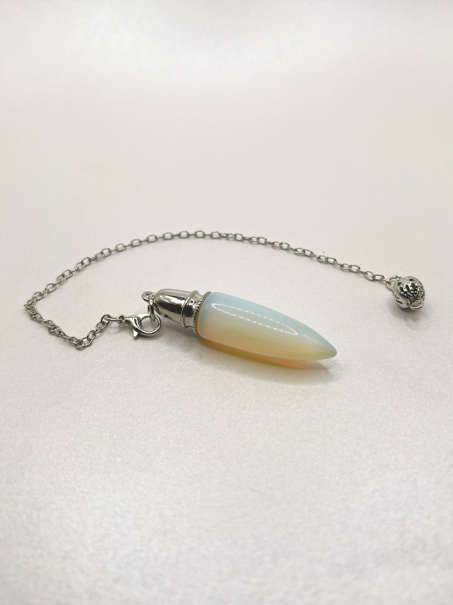 Este péndulo de ópalo es ideal para quienes buscan inspiración y creatividad, favoreciendo la expresión artística y la conexión emocional.