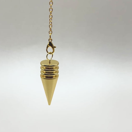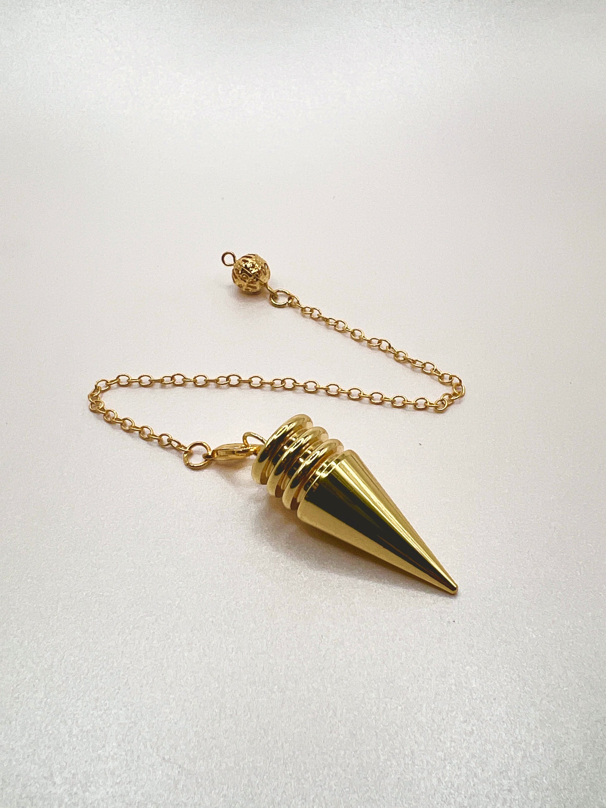 Este péndulo de cobre enchapado en oro es ideal para quienes buscan una herramienta energética en prácticas de radiestesia, Reiki y Wicca. Su diseño en anillos simboliza la conexión entre energía y equilibrio, ofreciendo claridad y precisión en cada uso.