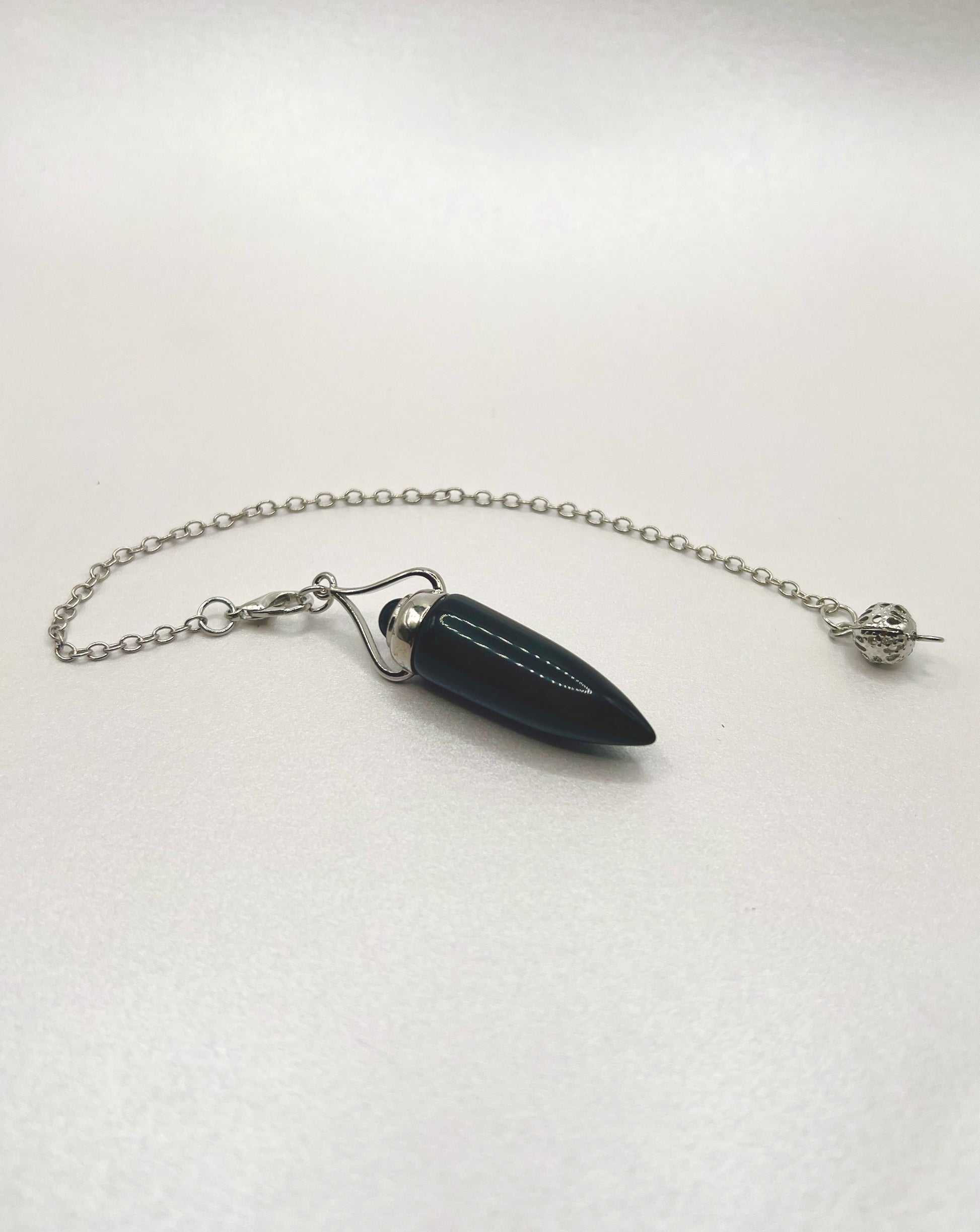 Este péndulo de obsidiana negra con un diseño decorativo de alas es perfecto para quienes buscan liberación de energías negativas y protección, promoviendo una sensación de seguridad.