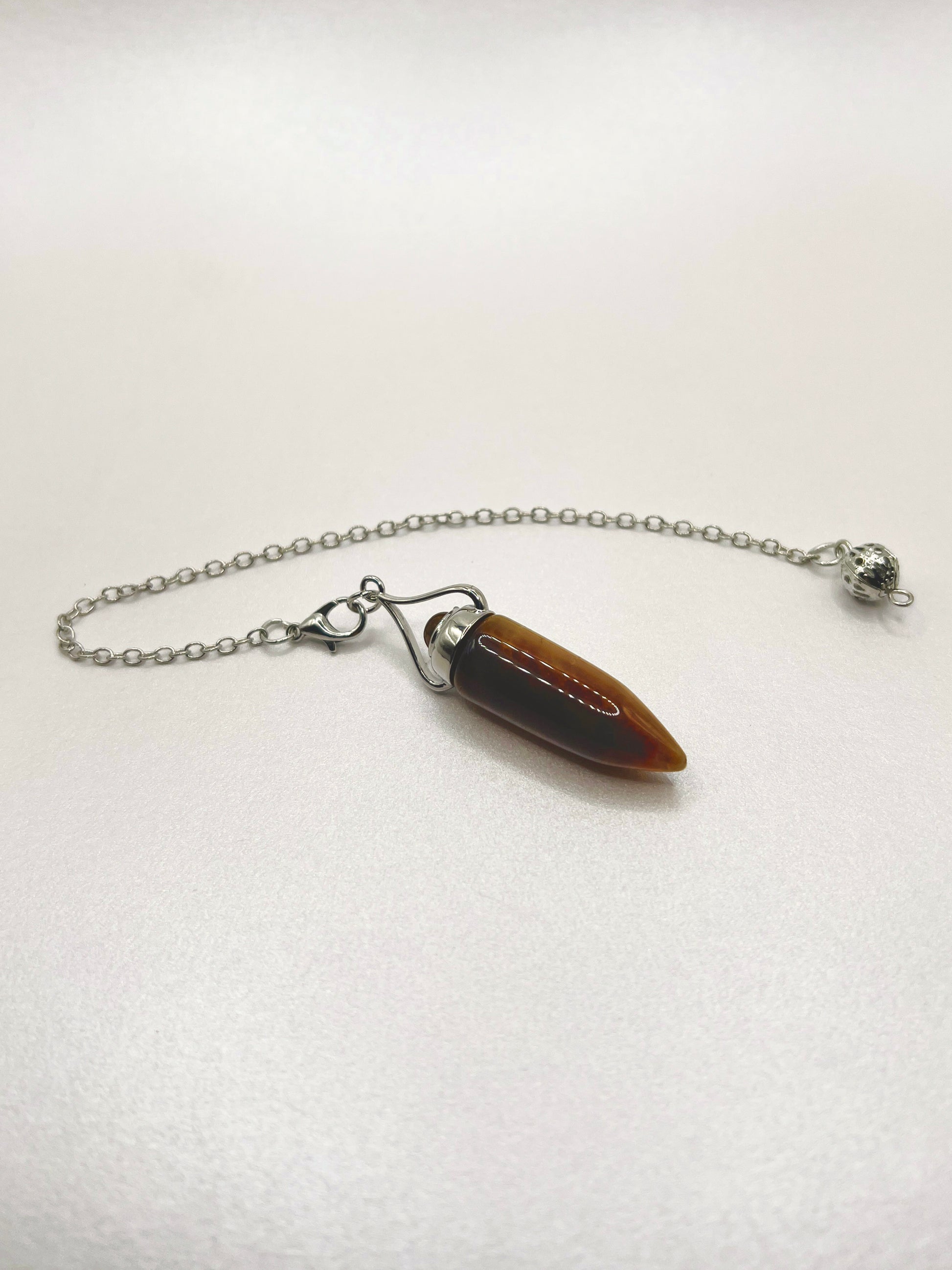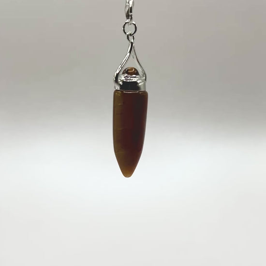 Este péndulo de ojo de tigre con un diseño decorativo de alas es ideal para quienes buscan protección y claridad mental, ayudando a equilibrar la energía y aumentar la confianza.