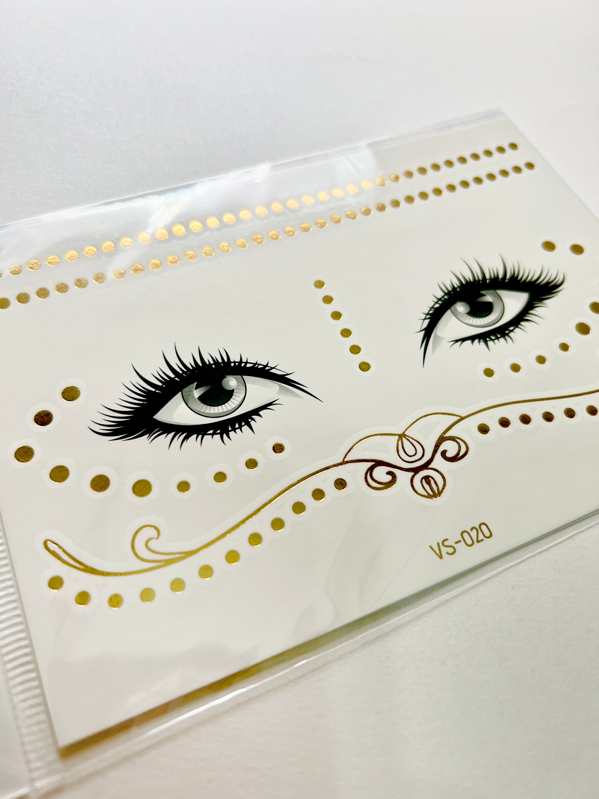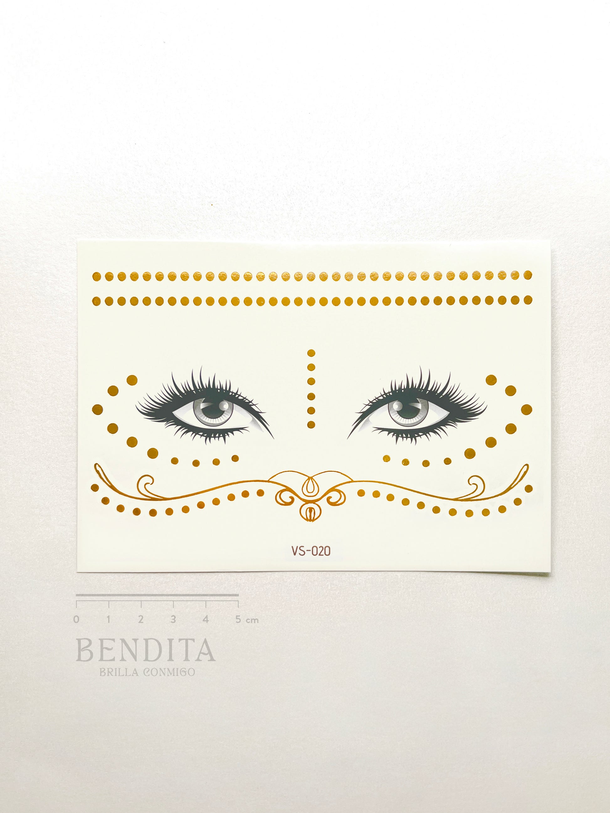 Estos tatuajes temporales metálicos en tonos dorado y plateado están diseñados para realzar tu rostro con un toque de brillo.