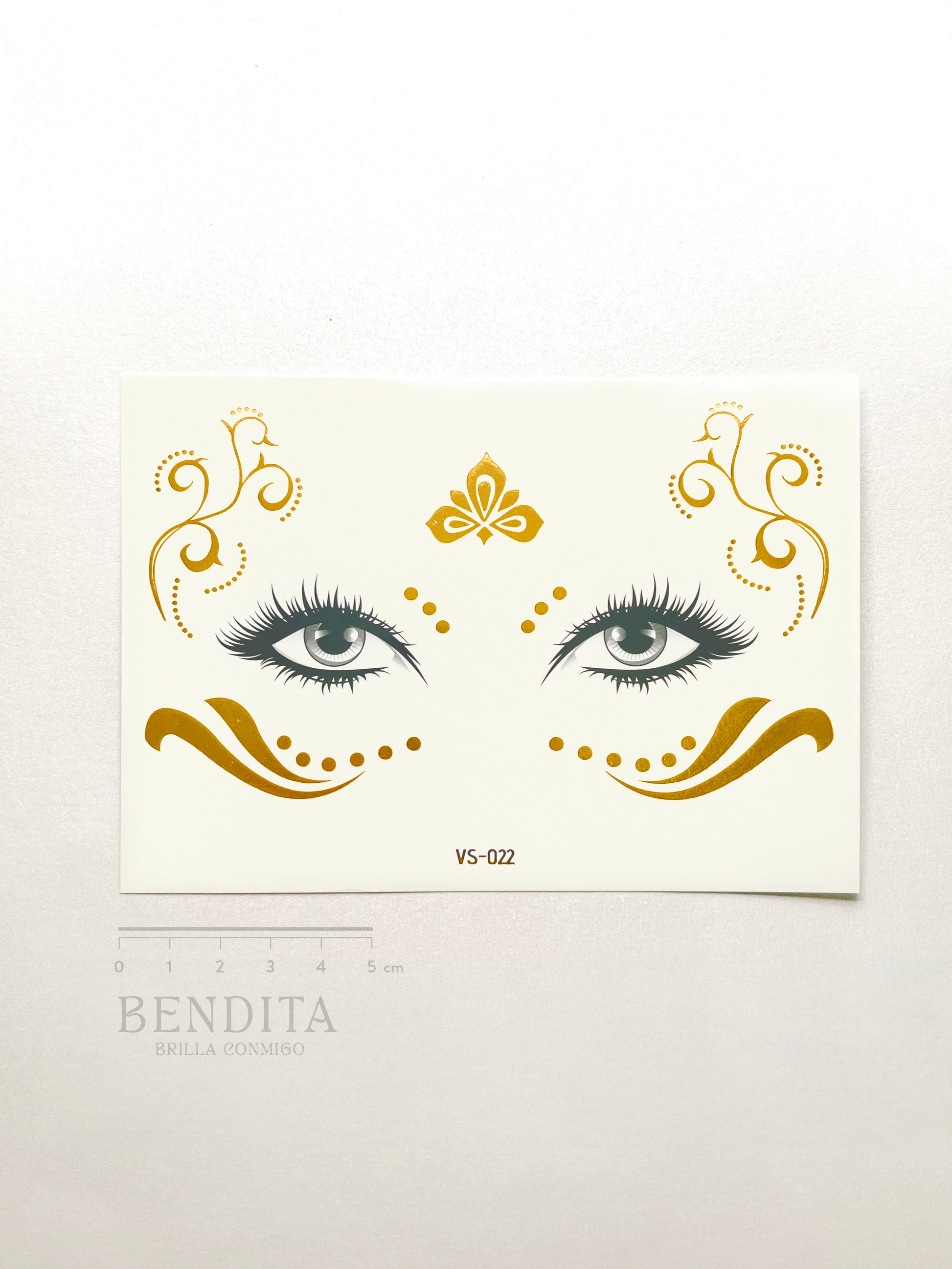 Estos tatuajes temporales metálicos en tonos dorado y plateado están diseñados para realzar tu rostro con un toque de brillo.