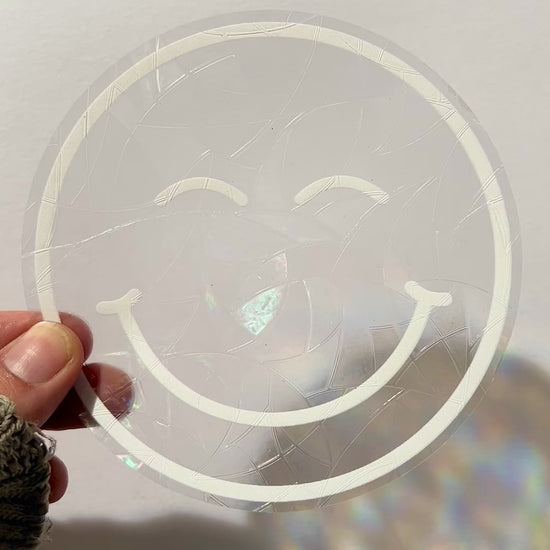 Mantené la buena vibra en tu espacio con este atrapasol en sticker de un smiley. Este diseño simple pero alegre proyecta suaves reflejos de luz, llenando tus ventanas de luz natural y una sensación de positividad. Perfecto para quienes buscan un detalle minimalista y divertido en su decoración, ideal para superficies de vidrio como ventanas o espejos.